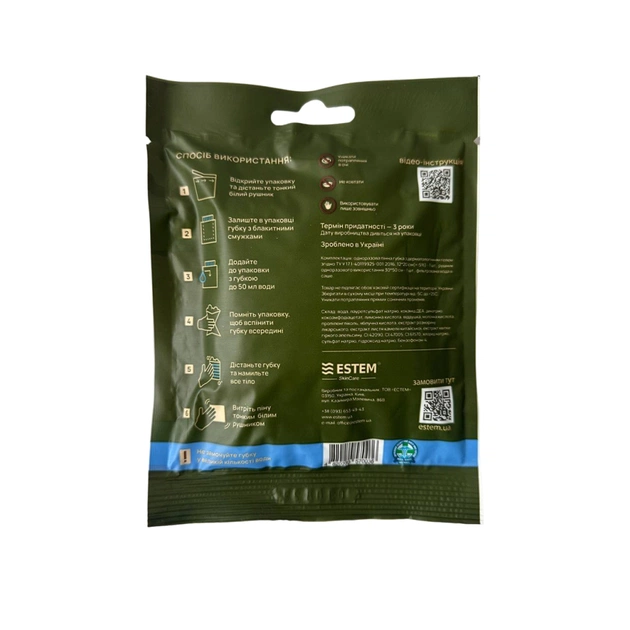 Пінна губка Estem – це унікальний гігієнічний засіб для приведення тіла до ладу без доступу до водопроводу.