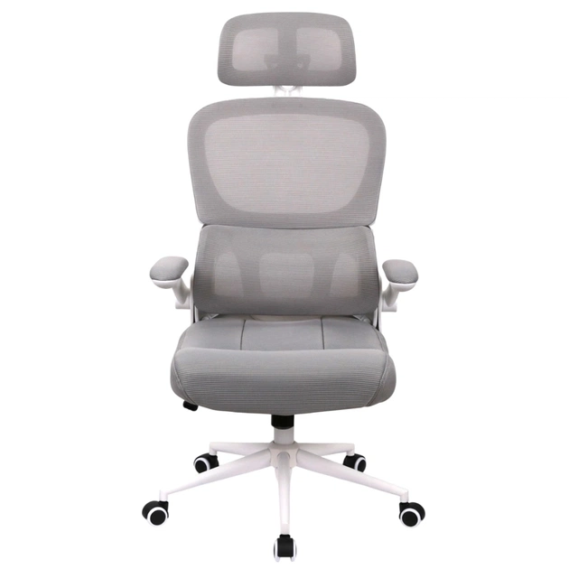 Підлокітники. У даній моделі стильні відкидні підлокітники з білого пластику, доповнені м'якими накладки, що послужать вам комфортної опорою. Горизонтальна робоча поверхня дозволяє зручно розмістити руки і зняти зайве навантаження з плечових суглобів. Гвинтові кріплення підлокітників дають можливість підняти їх вертикально, і присунути крісло впритул до столу, коли крісло не використовується.
