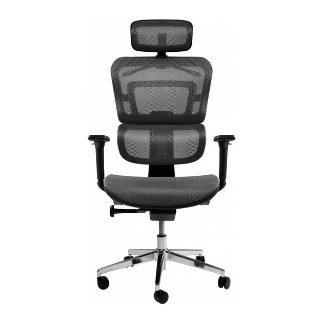 ЕргономічністьЗавдяки тому, що цей виріб виготовлений з тканинної оббивки в поєднанні з сітчастим матеріалом, користувач має можливість тривалий час перебувати в кріслі при цьому не відчуваючи дискомфорту навіть у спекотну погоду. Спинка цього крісла має поперекову підтримку, а також підголовник. Усі три елементи створюють ортопедично правильну посадку для користувача. Це мінімізує відчуття втоми в спині, що, у свою чергу, дозволить робити свою роботу ефективніше.