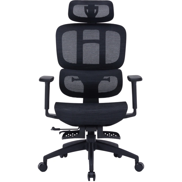 Регульована поперекова підтримка забезпечує ергономічно правильне положення спини, щоб запобігти перенапрузі при тривалому сидінні. Кут нахилу та висота підголівника регулюється для оптимального позиціювання. А завдяки регулюванню спинки за висотою ви можете налаштувати зручне положення спинки для свого зросту. Нейлонові 3D підлокітники, покриті м’яким поліуретаном, регулюються за висотою, вперед-назад і змінюють кут повороту по горизонталі (назовні або всередину). Для регулювання нахилу та фіксації спинки, у кріслі використовується синхромеханізм, що у поєднанні з функцією регулювання глибини сидіння надає ще більше комфорту. Як приємний бонус до всіх вище перерахованих можливостей, крісло обладнане складною підставкою для ніг. Вона допоможе зняти напругу та покращити кровообіг під час перерв, а також дозволяє зайняти повністю горизонтальне положення, використовуючи нахил спинки.