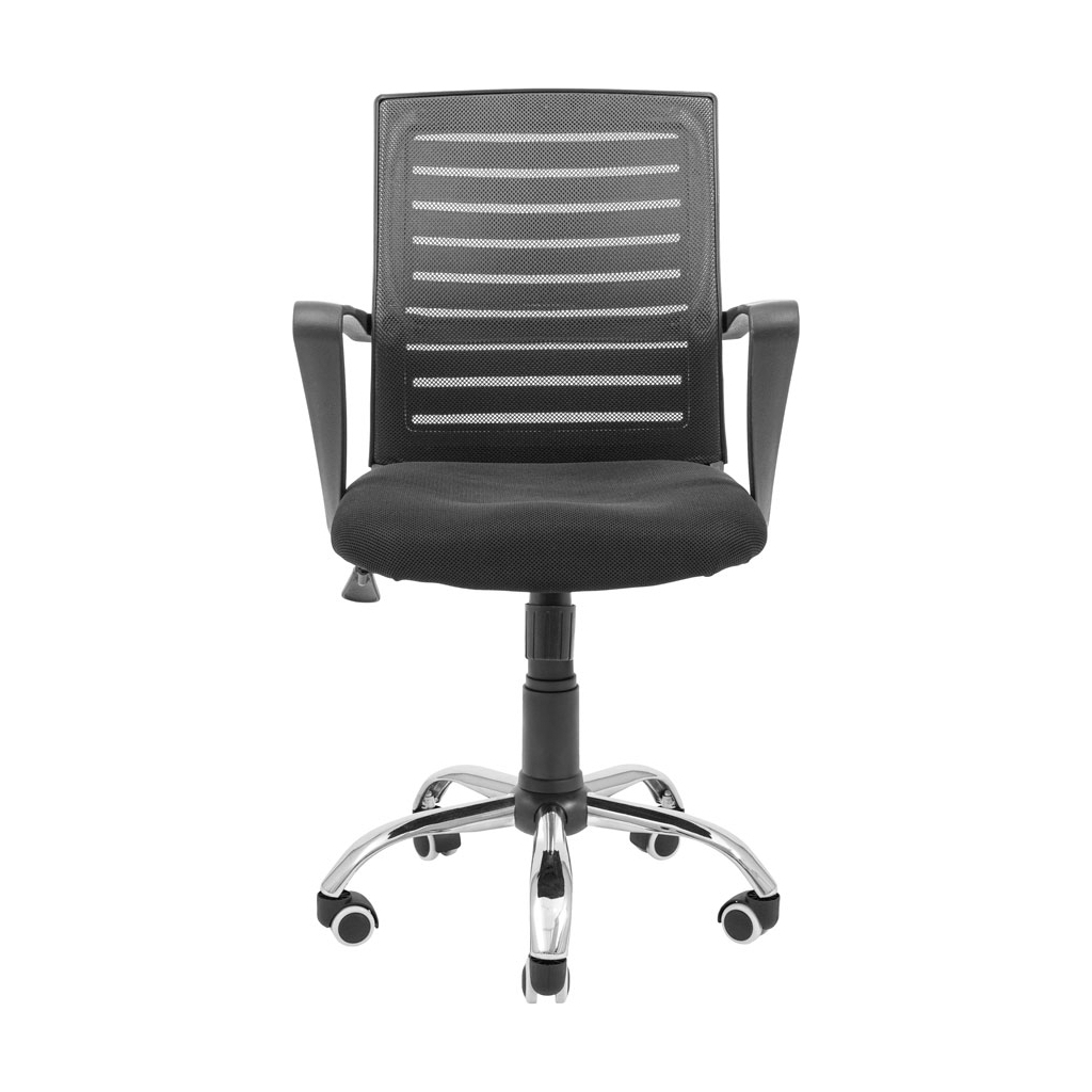 Підлокітники виконані з посиленого пластику та мають продуману вигнуту форму, що дозволяє зручно розмістити на них руки. Стильна хромована хрестовина оснащена обгумованими роликами, що дозволяє безшумно і безпечно пересувати крісло по різних поверхнях, не боячись їх пошкодити.