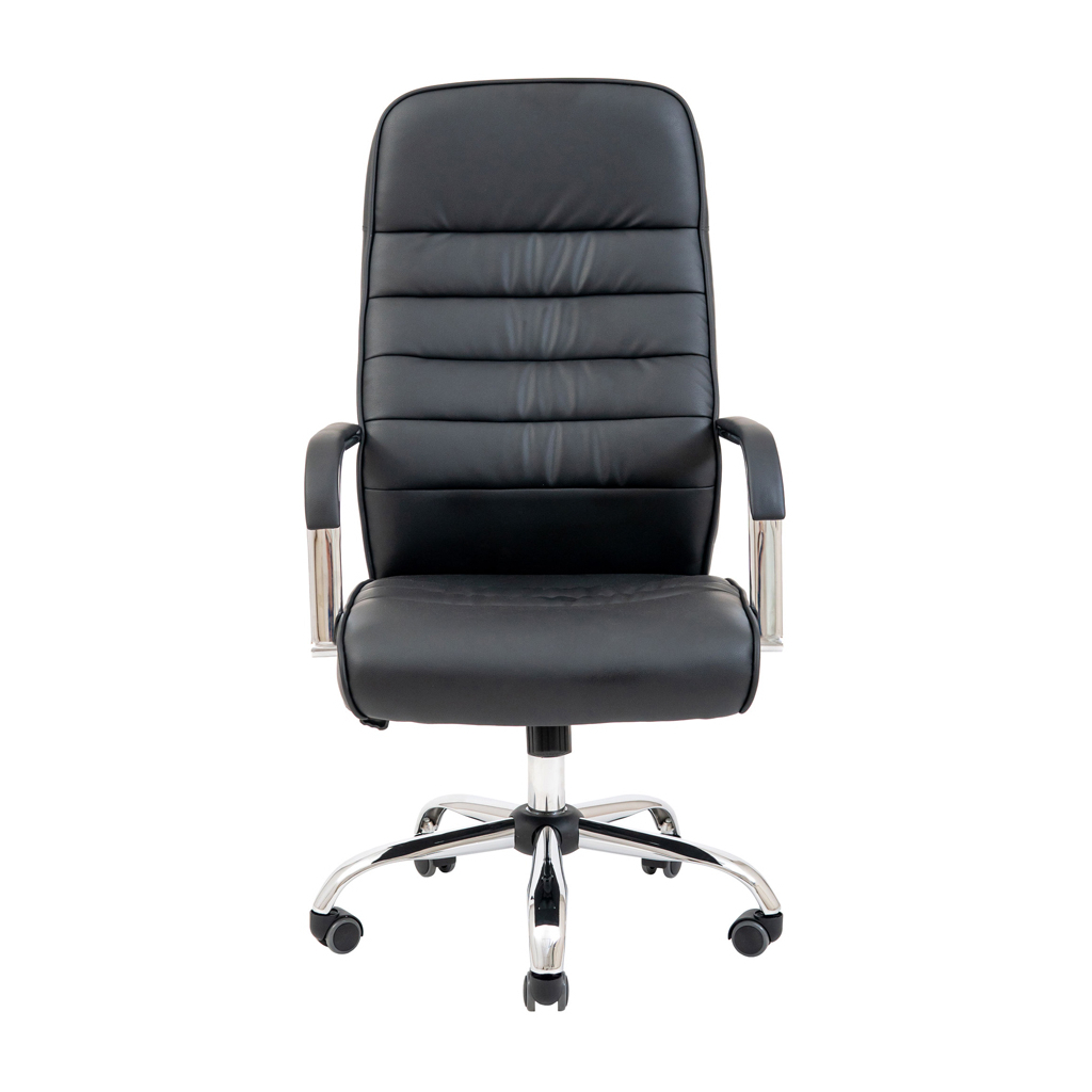 Оббивка крісла виконана у якісній екошкірі класичного чорного кольору.