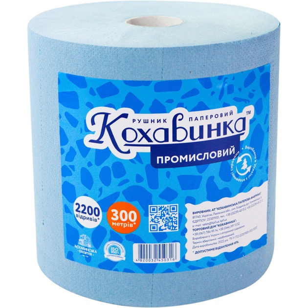 Паперові рушники Кохавинка Промислові Сині 300 м 1 шар 1 рулон (4820032450316)