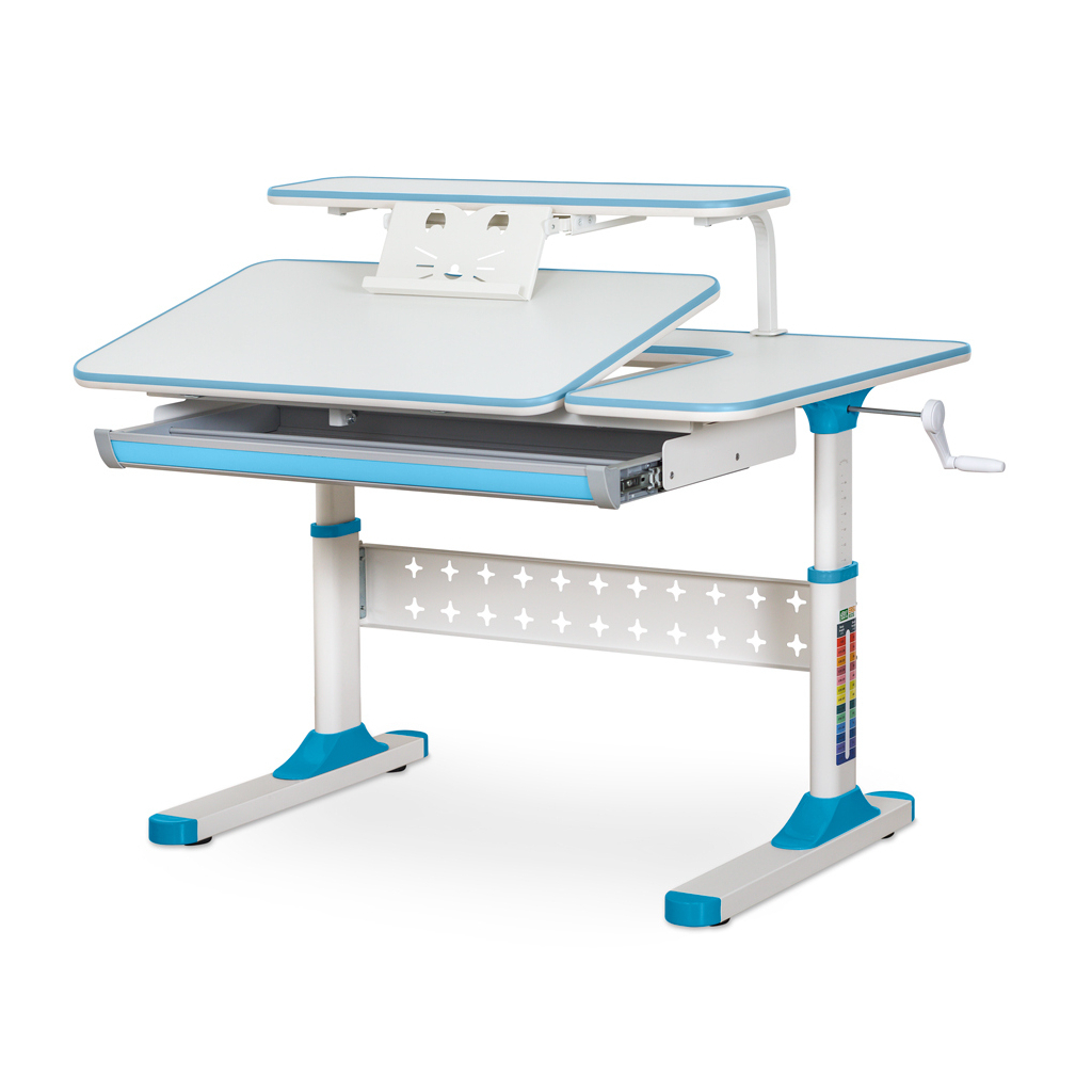 Стільниця розділена на рухому та не рухливу частини. Рухлива частина стільниці змінює кут нахилу до 60 градусів. Плавність регулювання забезпечує газліфт. Для зміни положення стільниці досить м'яко натиснути на важіль та потягнути на себе. Для безпеки регулювання дітьми на стільниці передбачений проміжок, щоб не прищемити пальці. Завдяки великому діапазону кута нахилу стільницю можна використовувати як мольберт.