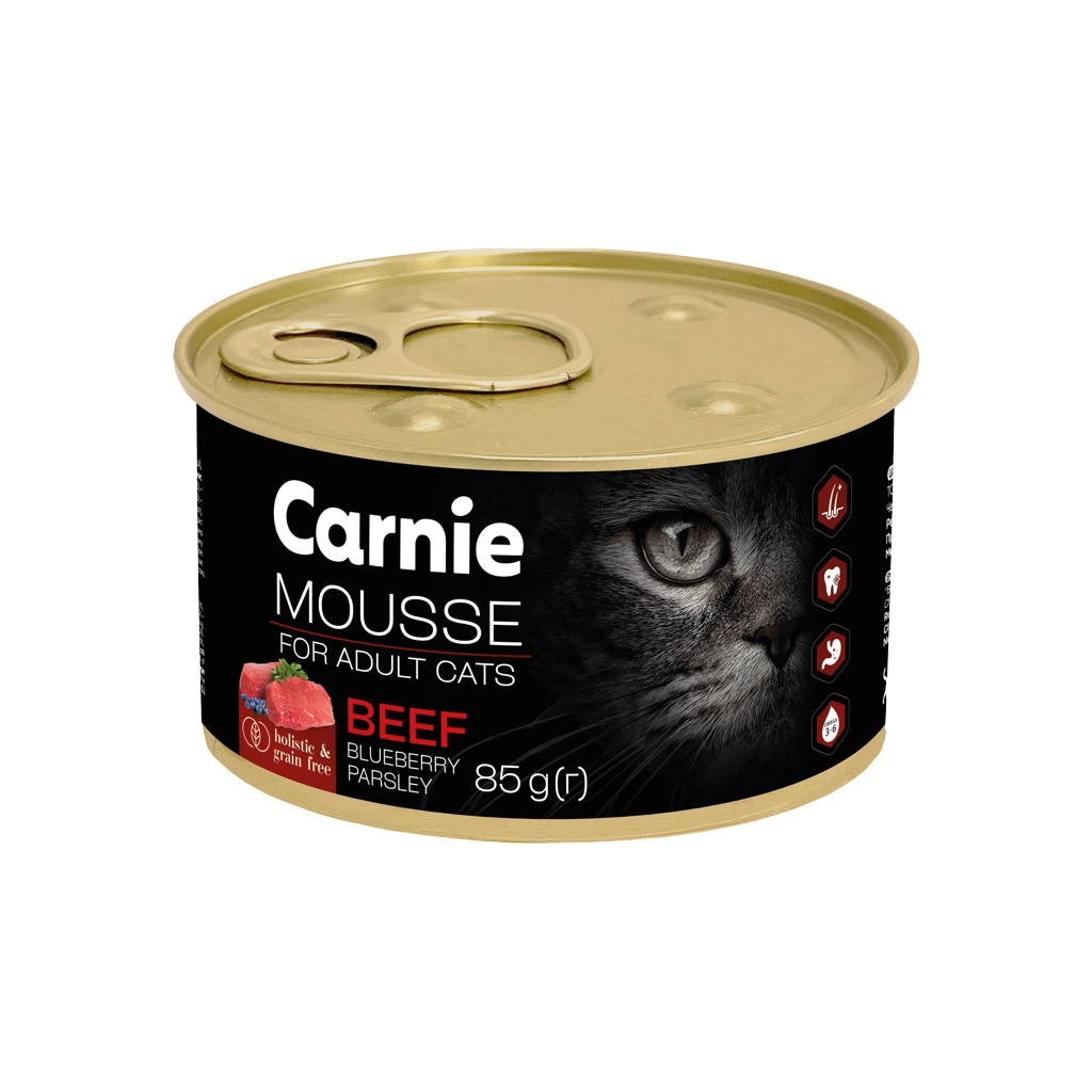 Паштет для котів Carnie з яловичиною, чорницею, петрушкою та желе 85 г (4820255195513)