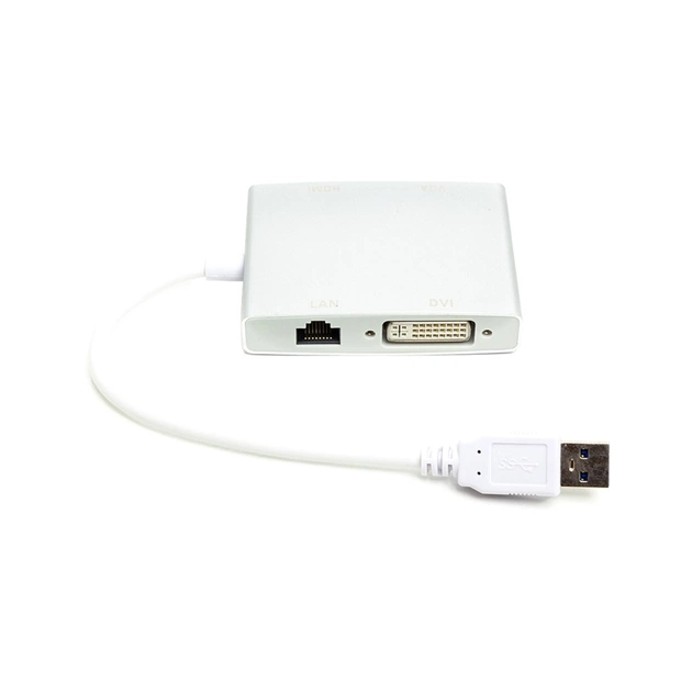 Перехідник USB 3.0 to HDMI, DVI, VGA, RJ45 Gigabit Ethernet PowerPlant (CA912087)