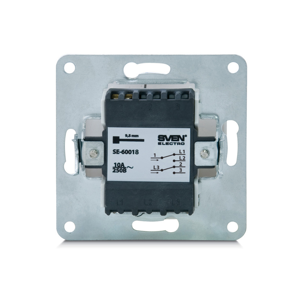 Електроустановочне обладнання SVEN SE-60018-C cream (4895134781545) - подвійний перемикач на два напрямки, який призначений для комутації електричних ланцюгів. Функція перемикання на два напрями дає можливість управління одним освітлювальним приладом з декількох точок. Величина максимально допустимого струму навантаження становить 10А. Матеріал корпусу - негорючий ABS-пластик, який забезпечує міцність, безпеку, нагрівостійкість в процесі експлуатації, стійкий до впливу температур до 650 °С. Основу механізму з термостійкого PBT-пластика володіє необхідними діелектричними властивостями і забезпечує стійкість до займання до 850 °С. Підпружинені кріпильні зачепи для зручності монтажу. Поліпшена конструкція клем для дротів.
