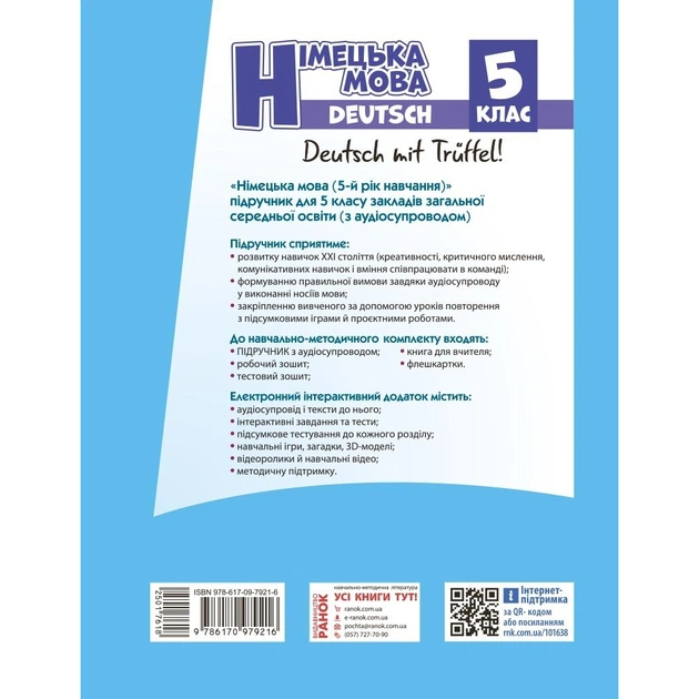 Підручник Німецька мова. 5-й рік навчання. 5 клас. З аудіосупроводом - С.І. Сотникова, Г.В. Гоголєва Ранок (9786170979216)