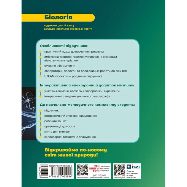 Підручник НУШ Біологія. 8 клас - О.В. Тагліна, А.М. Самойлов, О.М. Утєвська, Л.В. Довгаль Ранок (9786170995896)