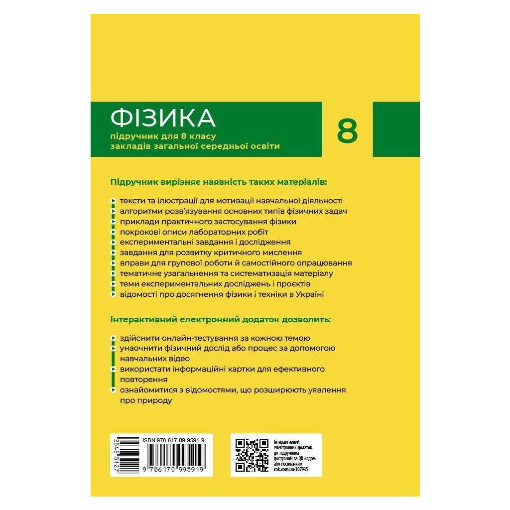 Підручник НУШ Фізика. 8 клас - В.Г. Бар'яхтар, Ф.Я. Божинова, С.О. Довгий, М.М. Кірюхін, О.О. Кірюхіна Ранок (9786170995919)