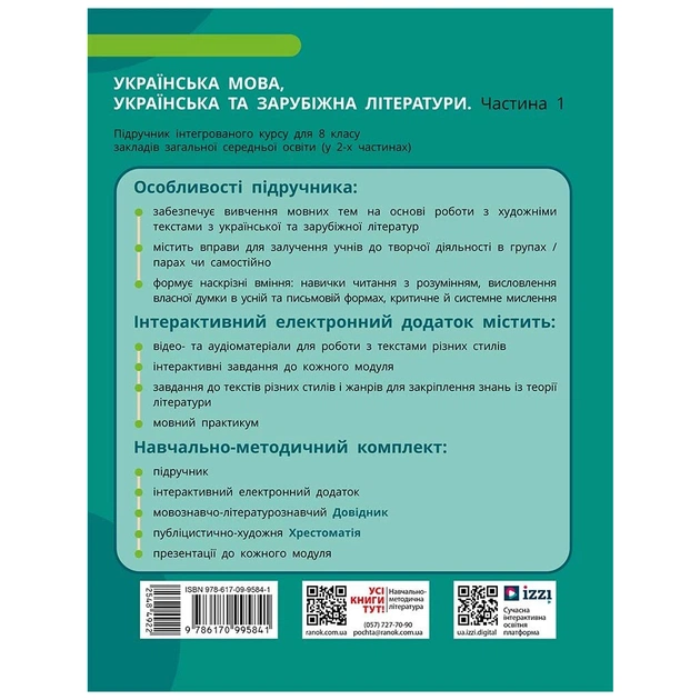 Підручник НУШ Українська мова, українська та зарубіжна літератури. 8 клас. Частина 1. Інтегрований курс Ранок (9786170995841)