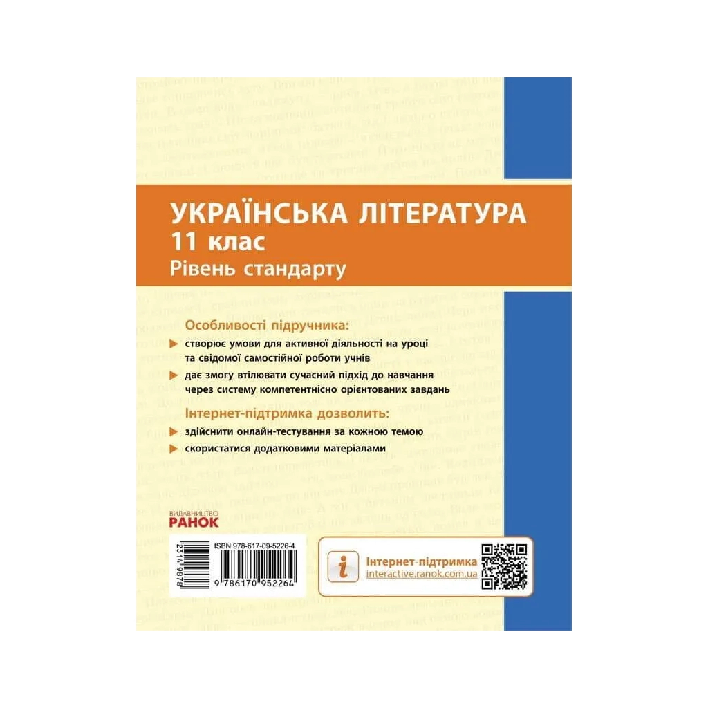 Підручник Українська література. Рівень стандарту. Для 11 класу - О.І. Борзенко, О.В. Лобусова Ранок (9786170952264)