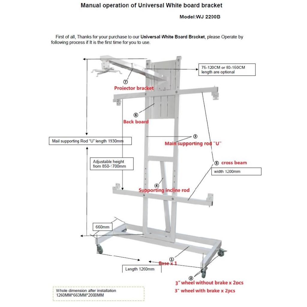 Міцна конструкція складається із сталевого профілю з білим порошковим покриттям. Конструкція обладнана коліщатами для мобільного переміщення і надійним фіксатором для стаціонарної установки. Для кожної моделі дошки існує свій розмір стійки. У зібраному і підключеному вигляді стійка виглядає дуже охайно, естетично і легко підійде до будь-якого інтер'єру.