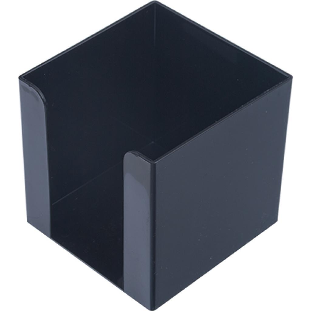 Бокс виготовлений з якісного пластика з вирізом для більш зручного використання паперового блоку, вміщує блок паперу для записів розміром до 9х9х9 см, колір непрозорий чорний