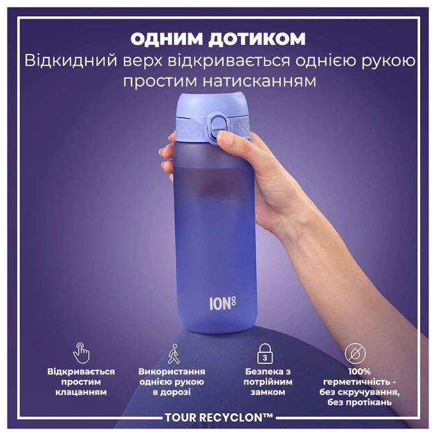ION8 OneTouch 750 мл — ідеальний вибір для тих, хто шукає легку, компактну та екологічну пляшку для активного життя. Її зручно брати з собою на роботу, в зал, у подорож, на велопрогулянку чи просто в місто.