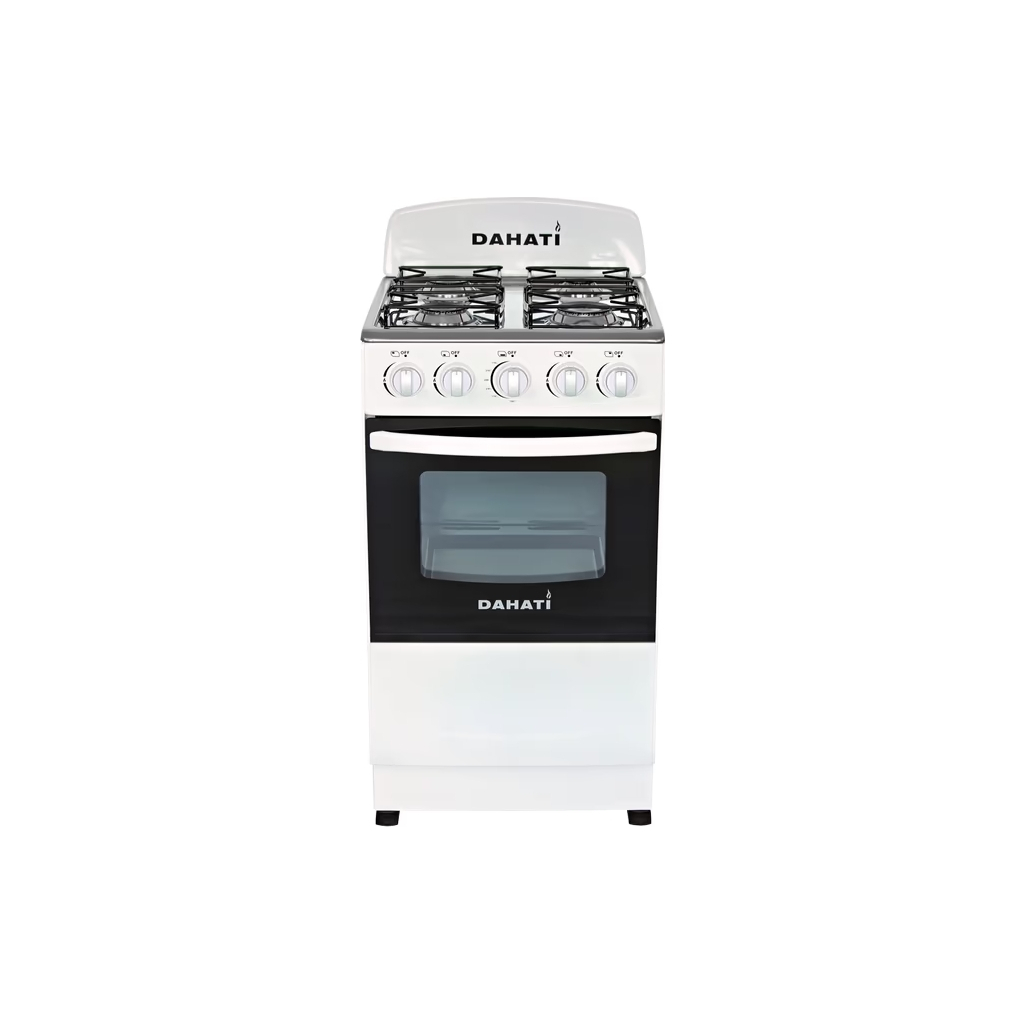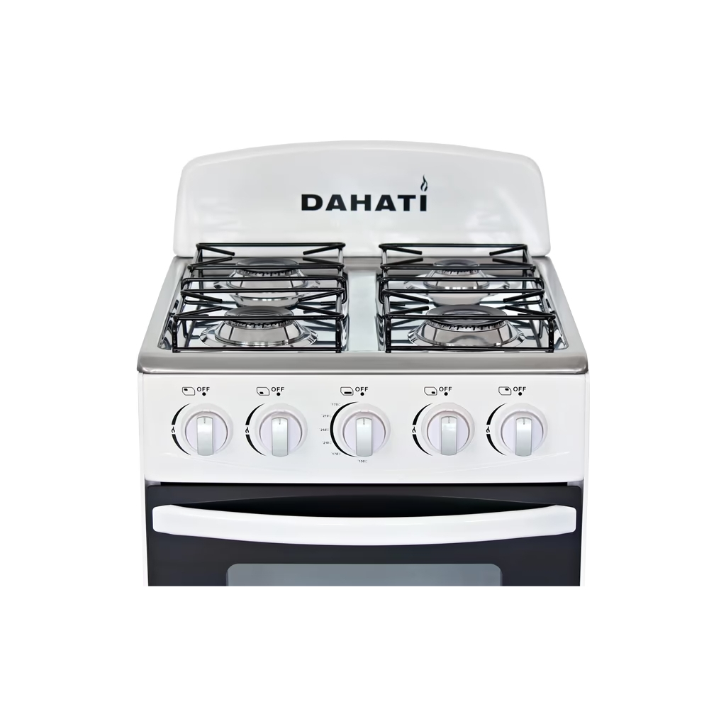 Плита газова DAHATI 2000-02 має газову робочу поверхню та газову духовку. Робоча варильна поверхня – нержавіюча сталь. Плита виконана в емальованому корпусі – класичний колір та легкий догляд для Вашої кухні. На передній панелі розташовані перемикачі регулювання потужності полум'я пальників робочої поверхні та духовки.