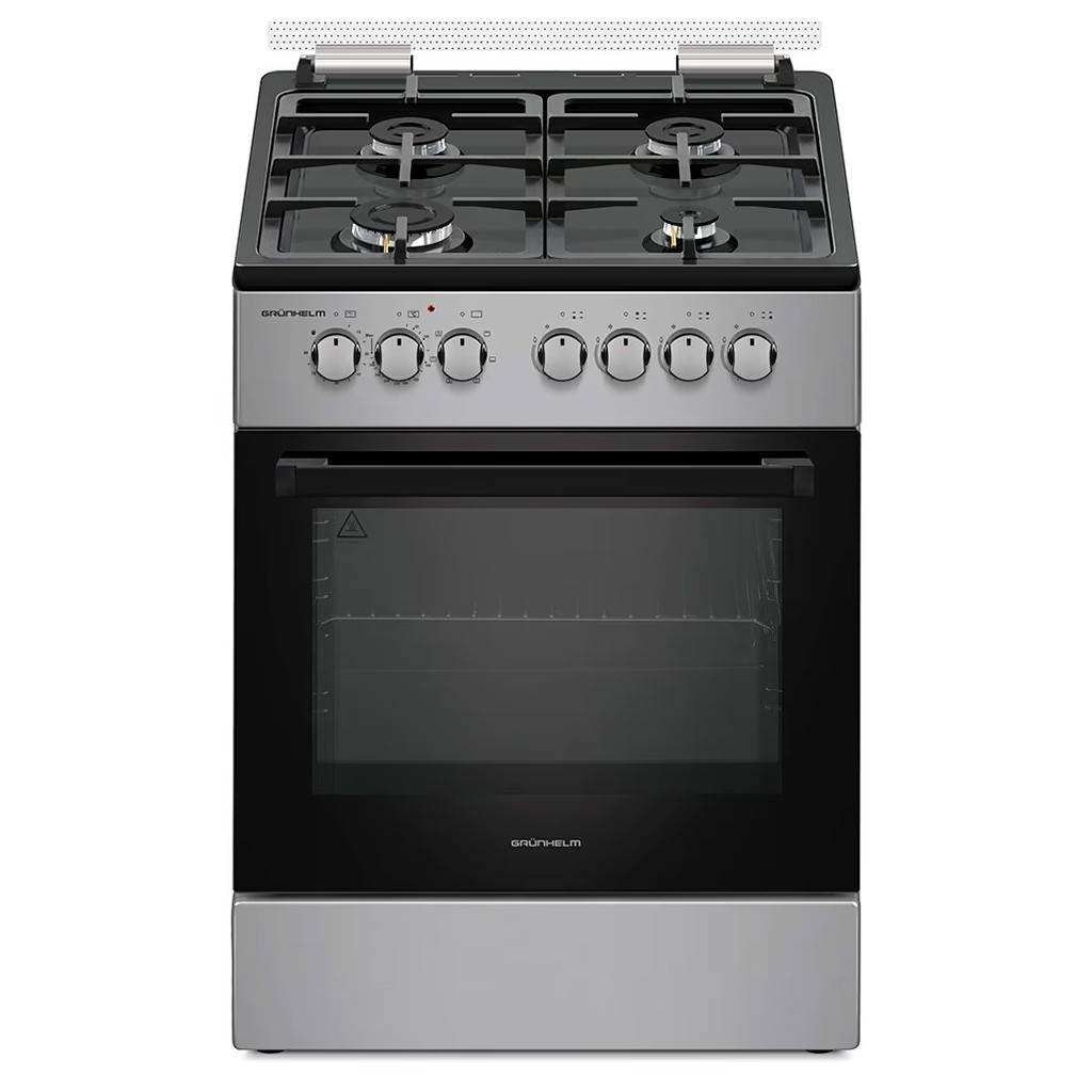 Комбінована плита GRUNHELM F661234GB стане вірною помічницею в приготуванні різних страв, якими ви будете тішити сім'ю і дивувати гостей. Модель виконана в сучасному лаконічному дизайні, завдяки якому вона відмінно впишеться в інтер'єр будь-якої кухні. Ергономічні елементи управління розташовані класичним способом - на передній частині плити над дверцятами духовки.