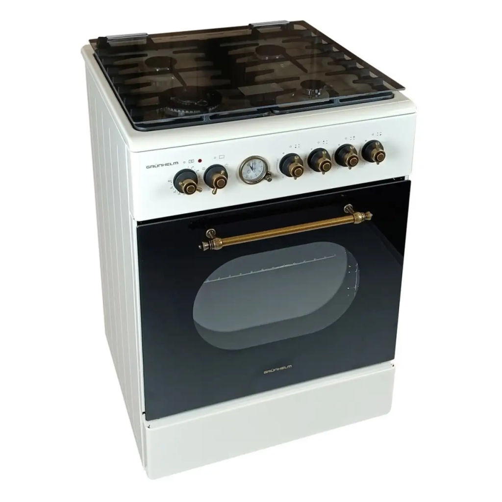 Плита газоелектрична Grunhelm – модель комплектується функцією контролю газу, тому використання цієї моделі буде максимально безпечним та комфортним. на передній панелі плити.