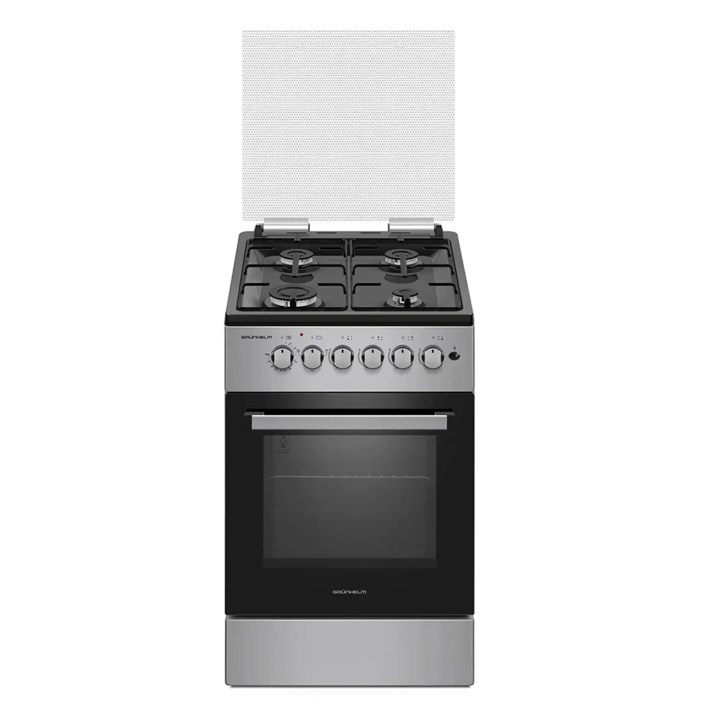 Плита газоелектрична Grunhelm – модель комплектується функцією газ контролю, тому використання цієї моделі буде максимально безпечним та комфортним. На варильній панелі передбачено 4 інноваційні газові конфорки різних розмірів – для комфортного та рівномірного нагріву посуду різних об'ємів та діаметрів днища. Потужність газового потоку та полум'я регулюють поворотні ручки на передній панелі плити.