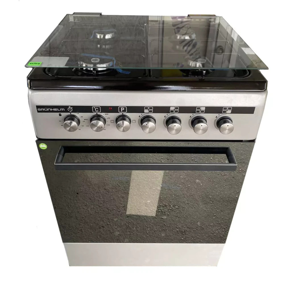 Плита газоелектрична Grunhelm – модель комплектується функцією газ контролю, тому використання цієї моделі буде максимально безпечним та комфортним. На варильній панелі передбачено 4 інноваційні газові конфорки різних розмірів – для комфортного та рівномірного нагріву посуду різних об'ємів та діаметрів днища. Потужність газового потоку та полум'я регулюють поворотні ручки на передній панелі плити.