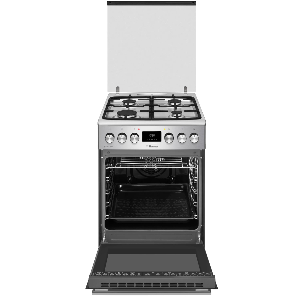 Hansa FCMX58329 – це сучасна комбінована плита з розширеними можливостями для зручного приготування. Газова варильна панель із нержавіючої сталі має 4 конфорки з автоматичним запалюванням і чавунними ґратами. Простора 65-літрова електрична духовка оснащена конвекцією, електричним грилем і 8 програмами готування.