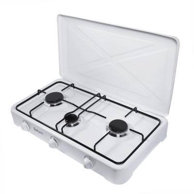 Компактна газова плита без духовки Saturn 63-010-11 ідеально підійде для маленьких кухонь і дозволить готувати одночасно три страви, так як оснащена трьома конфорками. Потужність подачі газу регулюється механічно за допомогою регуляторів, тому управляти кухонною плитою буде легко, просто і зрозуміло.