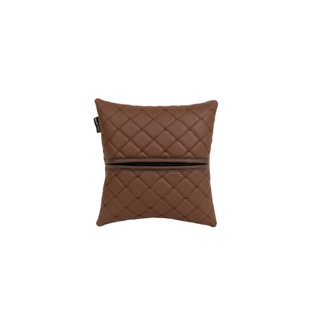 Наповнена холлофайбером, подушка м’яка та пружна, забезпечує належну підтримку спини й підходить людям із алергією завдяки гіпоалергенним властивостям наповнювача.Зовнішній чохол із екошкіри надає стильного вигляду та довговічності. Подушка також оснащена замком-блискавкою, що дозволяє за потреби зменшити кількість наповнювача, щоб налаштувати її жорсткість під власні вподобання.
