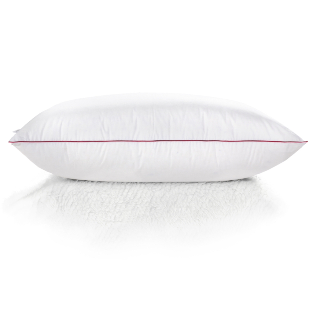 Наповнювач подушки: добірний 100% елітний гусячий пух ДеЛюкс категорії біло-сірий. Показник Fill Power (показник пружності, ступеня відновлення пуху в подушці та ковдрі після стиснення) 750 з 800 можливих — один із найвищих і найкращих показників серед пухових наповнювачів. Пух категорії ДеЛюкс справедливо вважається одним із найякісніших і найкращих наповнювачів для елітних постільних речей.