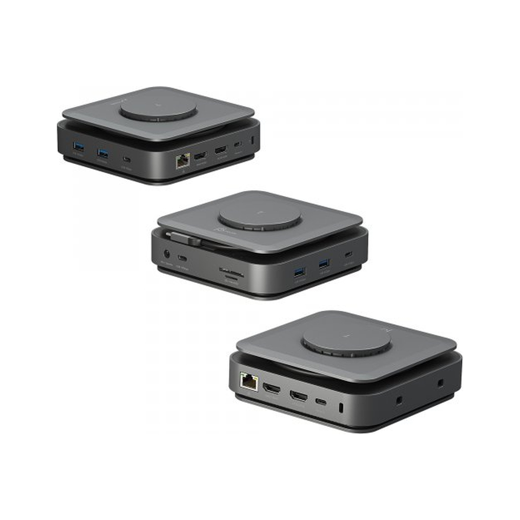 Ця компактна багатопортова док-станція ідеально підходить для офісного використання. Вона оснащена всім необхідним: двома виходами HDMI, портами USB, Gigabit Ethernet, кардрідером SD/microSD, аудіороз'ємом і оновленою специфікацією Power Delivery 3.1. Док-станція комплектується кріпленням для вертикального розміщення, що економить простір, і дозволяє підключати MacBook або інші ноутбуки, сумісні з USB-C, до 4K-монітора або телевізора.