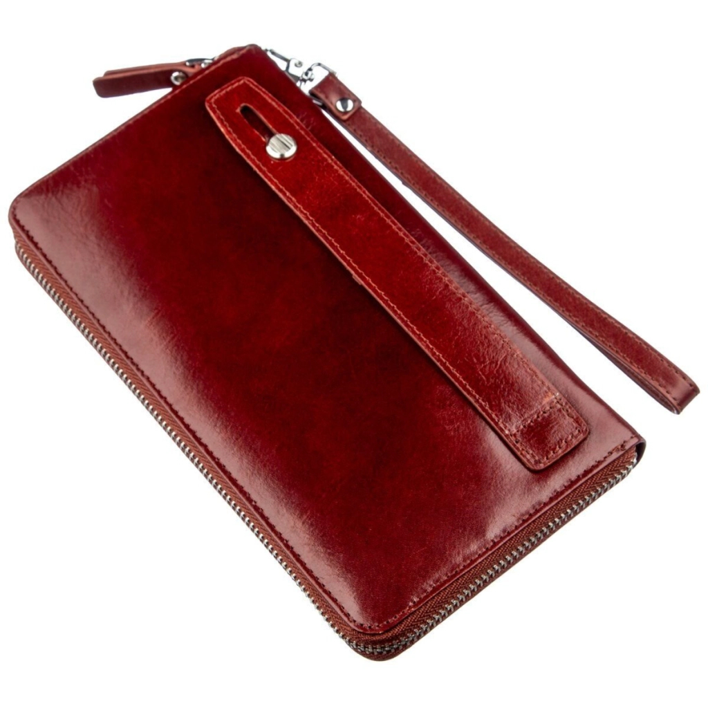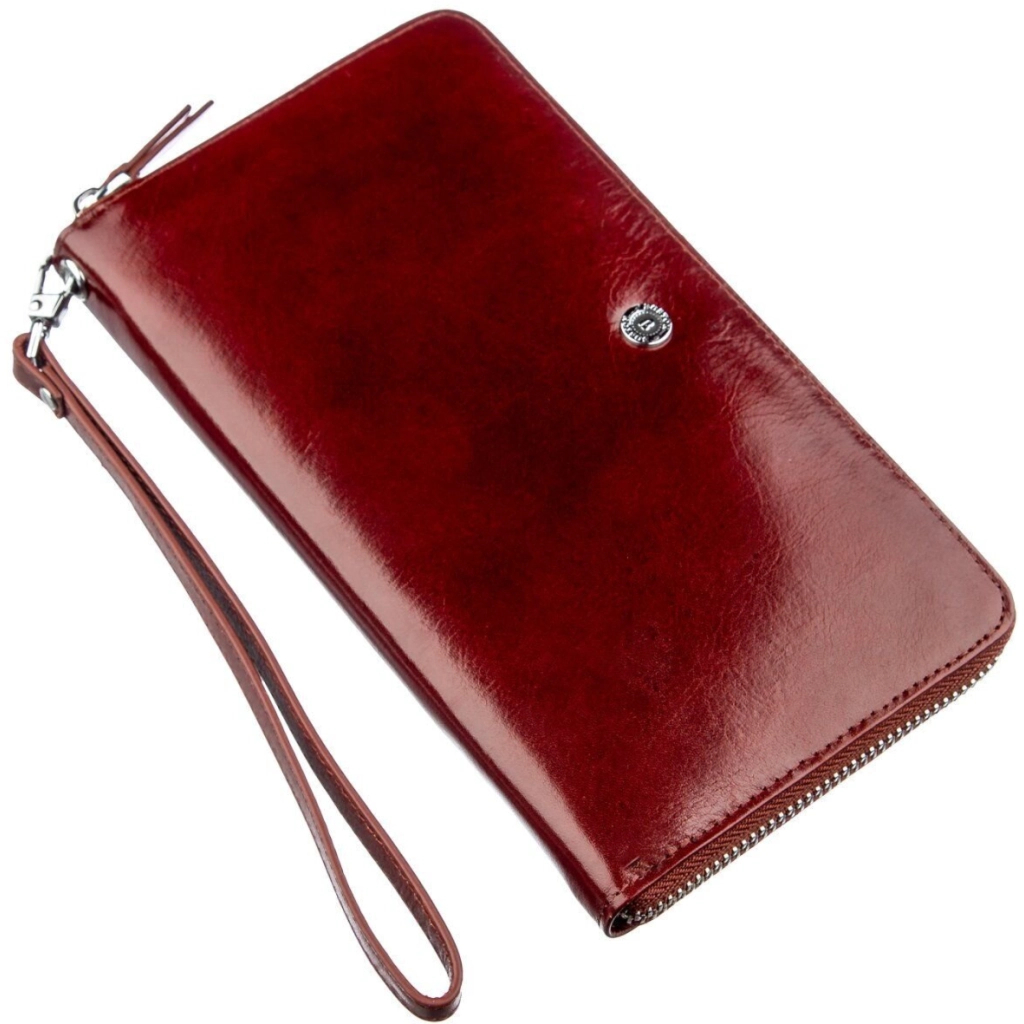 Портмоне красивого стильного коричневого кольору з червоним відтінком, виконане з приємної на дотик натуральної шкіри високої якості.