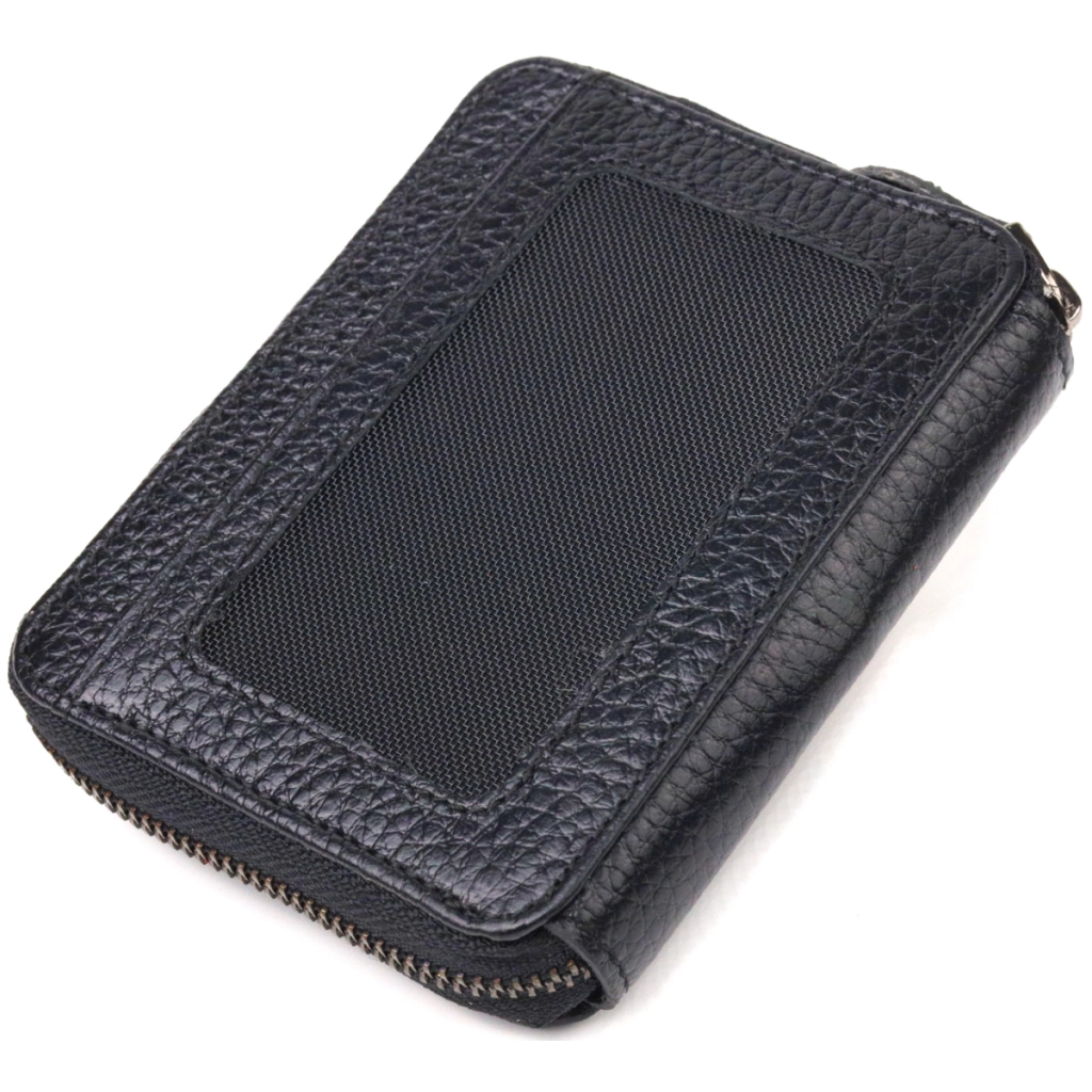 Стильний гаманець для жінок з натуральної зернистої шкіри. Аксесуар має одне основне відділення, в яке поміщаються купюри всіх номіналів, одинадцять кишень для карток, одна з яких під сіточкою, блок для карт із зовнішнього боку, а також кишеня для пропуску під сіточкою з лицьового боку. Закривається аксесуар на блискавку, а блок для карток хлястиком на кнопку. Колір фурнітури – темне срібло. Шкіряний гаманець є дивовижним подарунком для дружини, дівчини, подруги.