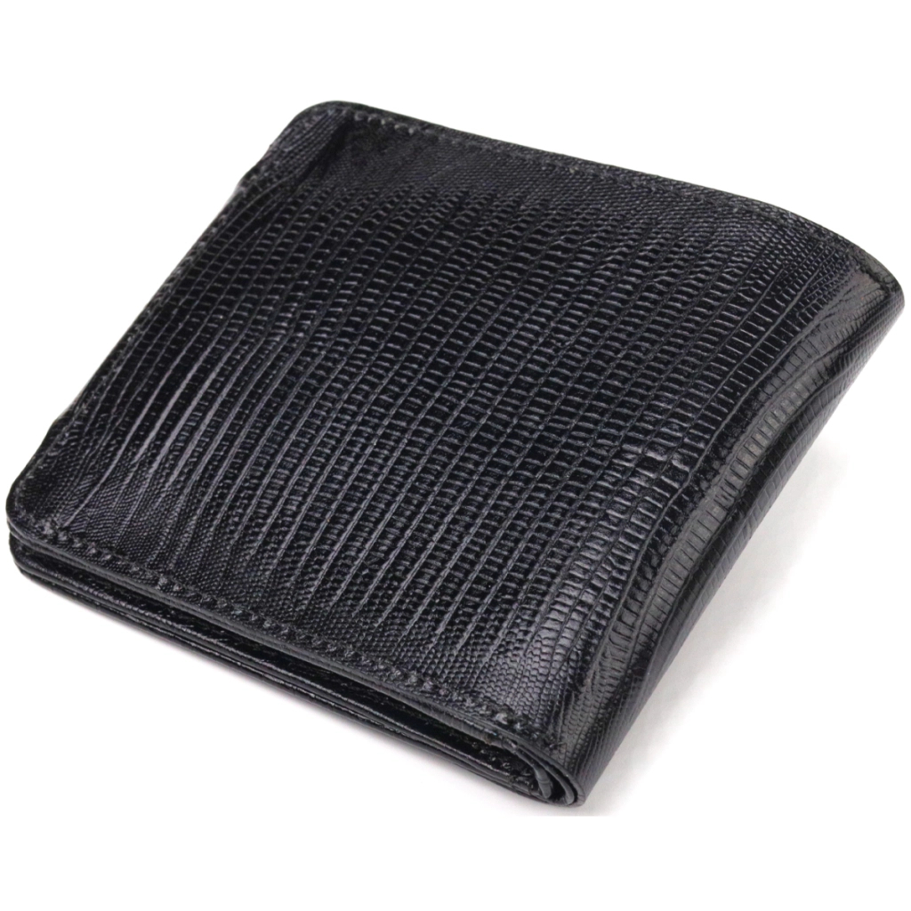 Чудовий чоловічий гаманець із натуральної фактурної шкіри із тисненням під рептилію. Аксесуар має одне відділення для купюр, в яке розміщуються купюри всіх номіналів, чотири прилеглі кишені, кишеню на блискавці на всю довжину гаманця, а також вісім відсіків для карток, один з них під сіточкою.