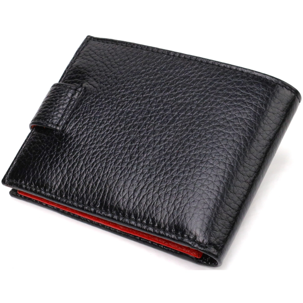 Цікавий чоловічий гаманець з натуральної шкіри у комбінації двох кольорів: чорного зовні та червоного всередині.