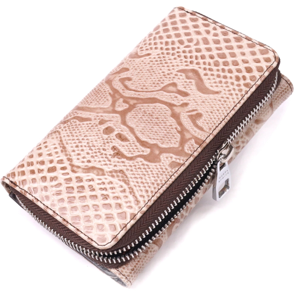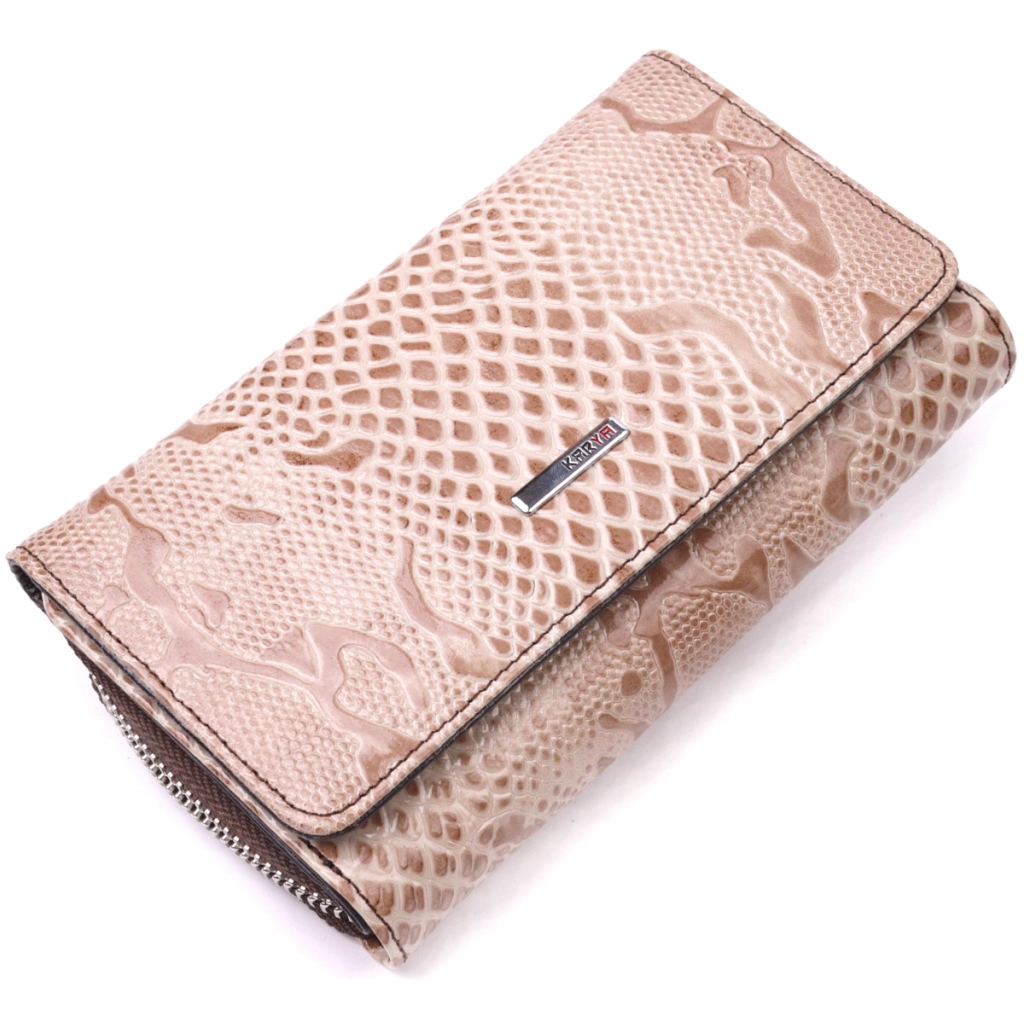 Портмоне Karya З лакованої фактурної шкіри Бежеве (21430)