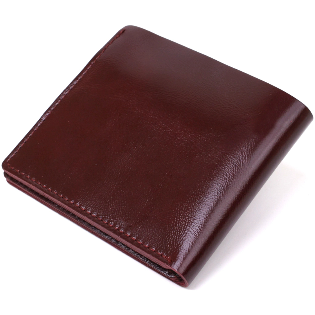 Стильне компактне портмоне із натуральної шкіри з відмінними експлуатаційними показниками. Має красивий темний колір з глянсовим бордовим відтінком, фактура - гладка. Закривається за допомогою шкіряного хлястика на кнопці. Усередині є основне відділення на всю довжину, слоти для карток і монетниця на кнопці. Такий аксесуар стане чудовим подарунком.