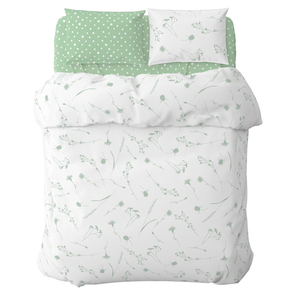 Постільна білизна Home Line Волошки/горох зелені на білому/білий на зеленому, бязь, полуторний (178708)