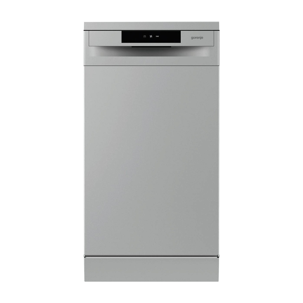 Посудомийна машина Gorenje GS520E15S вузька модель сріблястого кольору. Верхній кошик регулюється за висотою для зручного розміщення посуду різних розмірів. Захист від протікання AquaStop запобігає затопленню в кімнаті, зберігаючи меблі та іншу техніку. Звуковий сигнал після завершення циклу підвищує зручність експлуатації.