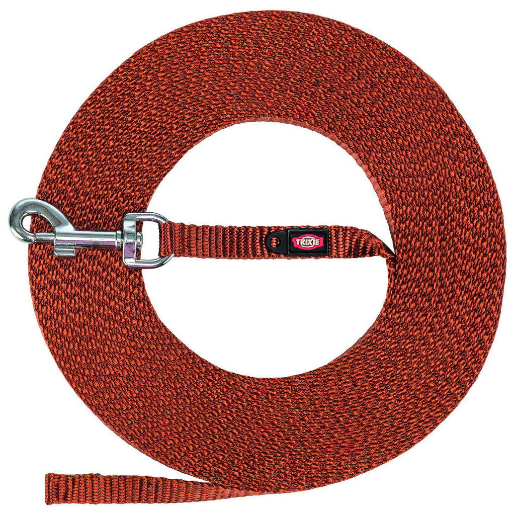 Trixie Tracking lead – це екстралегкий повідець для собак маленьких порід. Виготовлений із ремінної стрічки, він має маленький карабін і петельку для кріплення жетона чи мигалки. Цей повідець без петлі для рук.