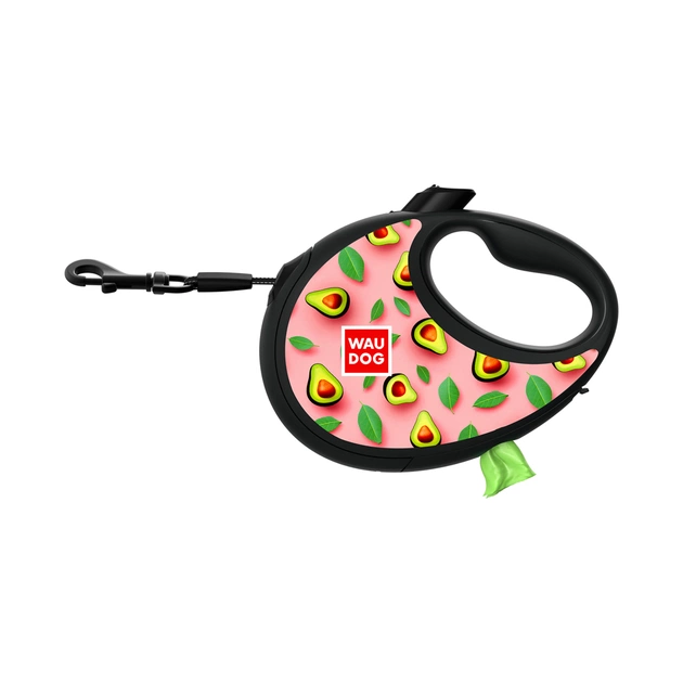 Повідець для собак WAUDOG R-leash з контейнером для пакетів "Авокадо на рожевому", світловідбивна стрічка, L (257-4051)
