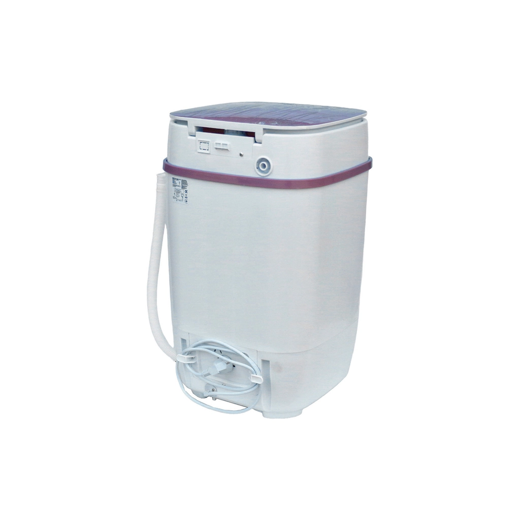 Ця пральна машина оснащена колекторним двигуном і має потужність при пранні 150 Вт. Її корпус та бак виготовлені з міцного ABS-пластику, що гарантує довговічність та надійність. Клас захисту IPX4 дозволяє використовувати машину у вологих умовах, а рівень шуму під час прання становить 62 дБ.