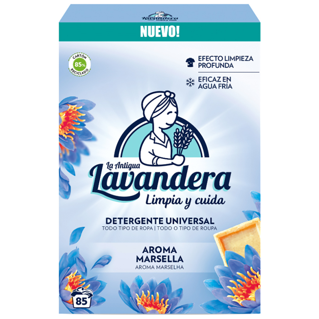 Пральний порошок Lavandera від іспанського виробника дбайливо пере речі, зберігає колірну гаму та виводить різного виду забруднення. Універсальний засіб підходить як для білих речей, так і кольорових. Активні компоненти сприяють швидкому виведенню забруднень різного типу. Пральний порошок має у своєму складі формулу марсельського мила, який дбайливо виводить плями, не псує тканину, а також має приємний аромат, який залишатиметься на вашому одязі тривалий час. Концентрована формула дозволить економно використовувати пральний засіб. Пральний порошок Lavandera відповідає всім європейським стандартам якості, гарантує відмінний результат прання та неймовірний аромат на довгий час.