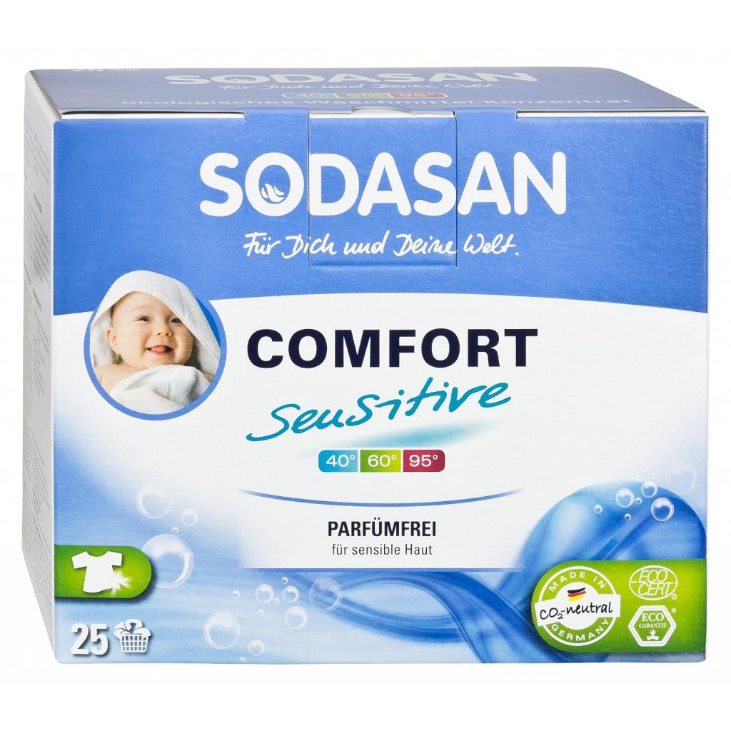 Пральний порошок Sodasan Comfort Sensitive - це органічний пральний порошок-концентрат для чутливої ​​шкіри, дитячих, білих і кольорових речей, з пом'якшувачем води і кондиціонером. Sodasan Comfort Sensitiv ефективно діє навіть при сильних забрудненнях, не вимагає додаткового замочування. Зберігає первозданний яскравий колір речей. Підходить для використання з водою будь-якої жорсткості, не вимагаючи додаткового пом'якшувача. Захищає від утворення вапняного нальоту. Для досягнення найкращих результатів рекомендується додавати кисневий відбілювач або рідкий засіб для виведення плям Sodasan.