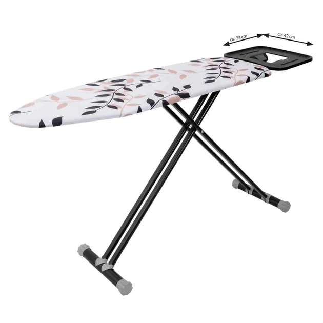 Сітчаста основа робочої поверхні запобігає утворенню конденсату, а бавовняний знімний чохол з додатковою підкладкою з пінополіуретану забезпечує легке ковзання праски і відмінний результат прасування. Дошка має широку металеву підставку під праску з внутрішнім розміром 37х28 см, яка підійде для встановлення парогенератора. Ніжки прасувальної дошки блокуються в складеному положенні, дозволяючи зручно зберігати її як горизонтально, так і вертикально.