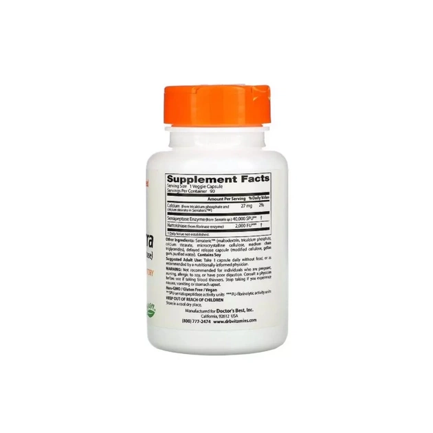 Серрапептаза володіє протизапальними, протинабряковими, фібринолітичними і анальгезируючими властивостями. Досить часто цей фермент застосовують в післяопераційний період, оскільки він знімає набряклість. З цієї ж причини його використовують і при лікуванні деяких захворювань дихальних шляхів. Серрапептаза так само знижує в'язкість слизу і покращує її відділення. Крім того, ця добавка здатна відновити еластичність судинних стінок, позбавивши їх від бляшок. Даний фермент застосовується для розсмоктування рубців і кістообразних утворень, оскільки здатний розчиняти «мертву» тканину, не пошкоджуючи «живу». Наттокіназа корисний для системи травлення, оскільки здатний очистити кишечник і шлунок від паразитів. Також він позитивно впливає на серцево-судинну систему. Наттокіназа розріджує кров, знижує рівень холестерину в ній, перешкоджаючи таким захворюванням як атеросклероз і нормалізуючи кров'яний тиск. Ця наттокіназа не містить вітаміну К. До складу даного комплексу входить Serrateric ™, чудова альтернатива ентеросолюбільному покриттю, яке захищає фермент до тих пір, поки він не досягне кишечника для оптимального всмоктування.