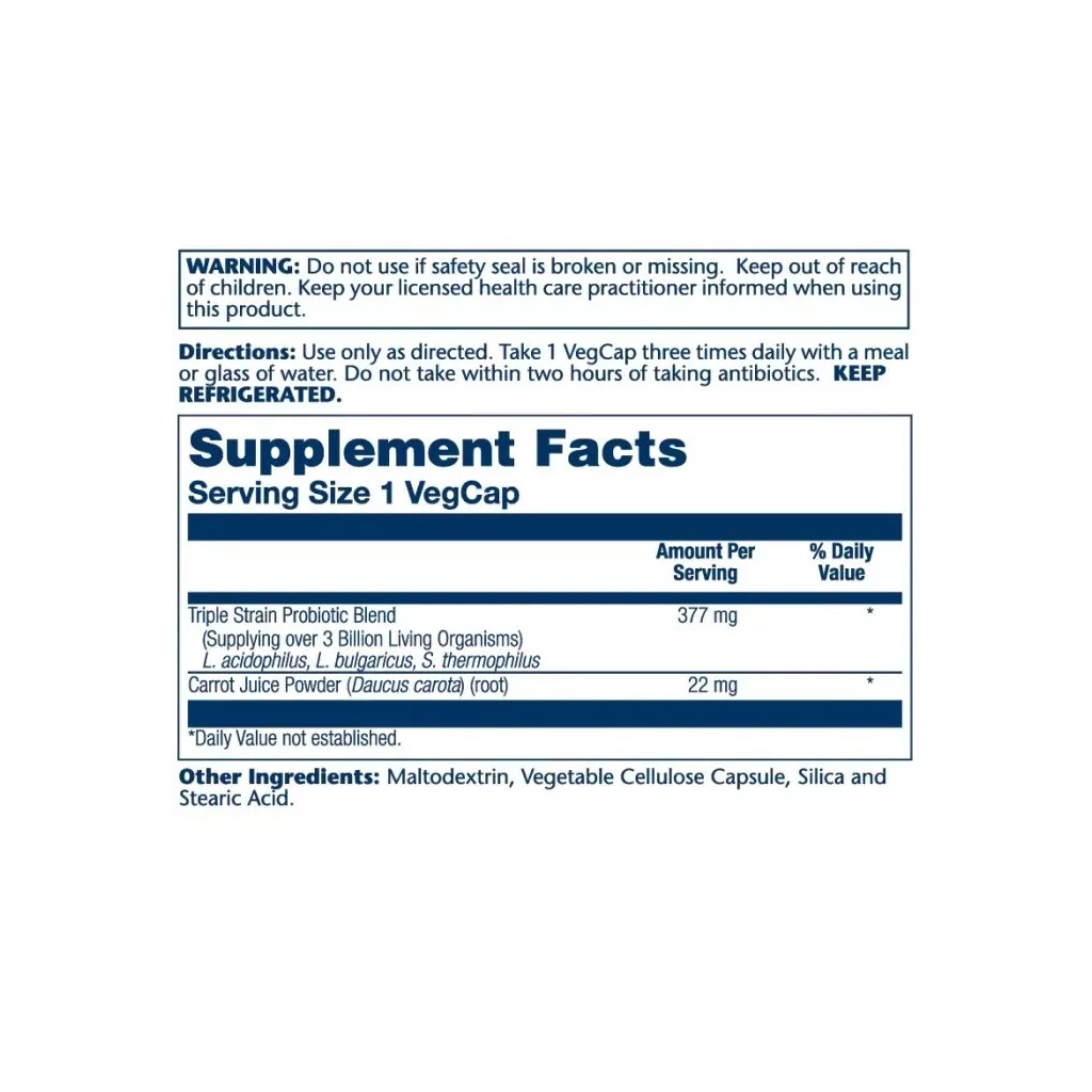 Пробіотики Acidophilus сприяють здоров'ю травлення та імунітету. Вони допомагають впоратися органам травлення з різними захворюваннями та наслідками недружніх втручань, наприклад, результатами прийому антибіотиків. Завдяки цим мікроорганізмам відновлюється мікрофлора кишківника та нормалізується правильне травлення. Прийом пробіотиків допоможе відновити пошкоджену мікрофлору кишківника та підтримувати її у здоровому стані. А це, у свою чергу, підвищить імунітет та опірність організму до негативних факторів (захворювань). Доданий пребіотик моркового соку живить дружні бактерії, що живуть у травному тракті, сприяє відновленню мікрофлори кишківника, попереджає коліт, діарею та інші захворювання шлунково-кишкового тракту, виводить токсини з організму. Використання даного комплексу сприяє правильному засвоєнню корисних речовин та підтримці здорового балансу бактерій у кишківнику.