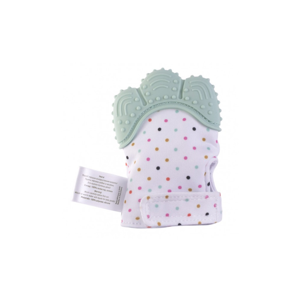 - виготовлений із текстилю з силіконовою накладкою, яка м'яко масажує ясна дитини