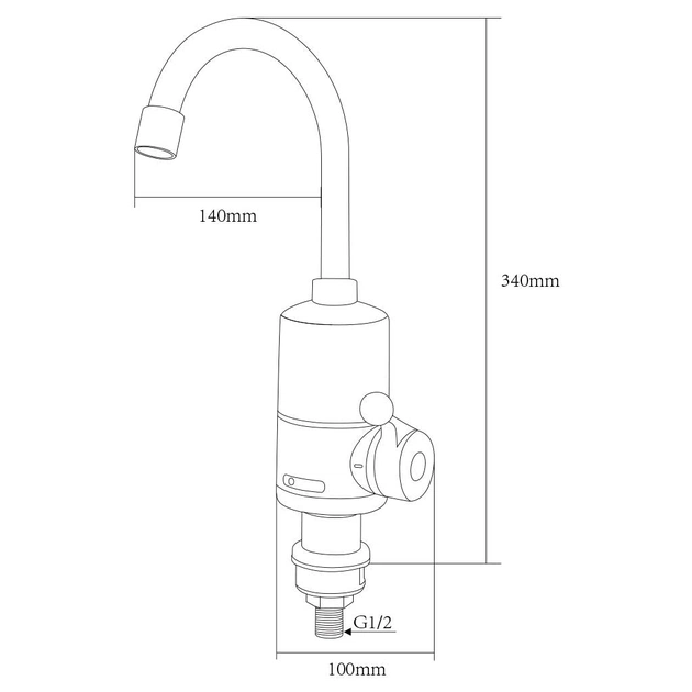 Цей проточник складається з привабливого білого корпусу з нагрівальними елементами, поворотного J-подібного виливу з аератором, а також регулятора температури нагріву та напору струменя.