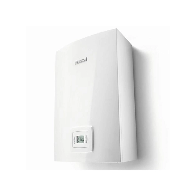 Модуляція потужності, адаптована для тиску газу 13 мбар. Захист від перегріву, зникнення тяги. Постійна температура гарячої води на виході (незалежно від температури води на вході). Мінімальний тиск води 0,1 бар, максимальне – 13 бар.
