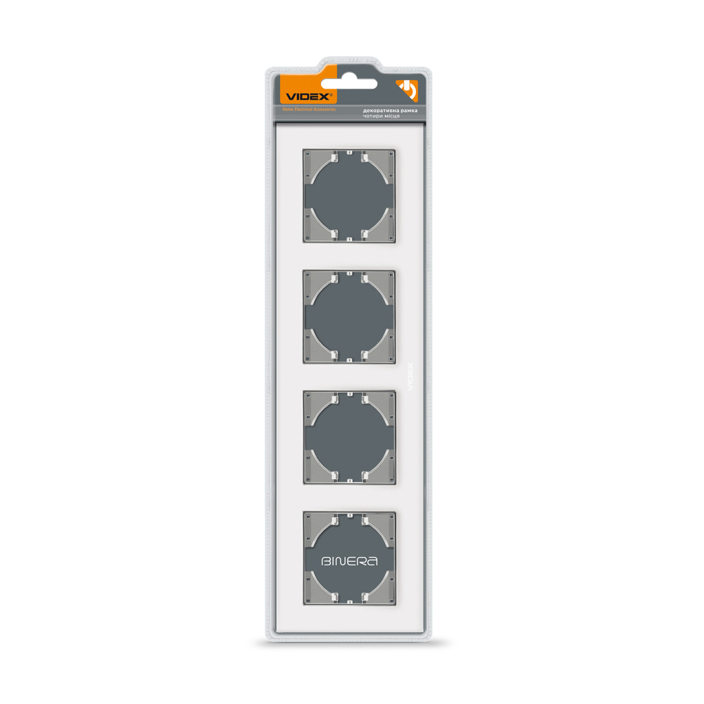 Рамка Videx BINERA біле скло 4 поста (VF-BNFRG4H-W)