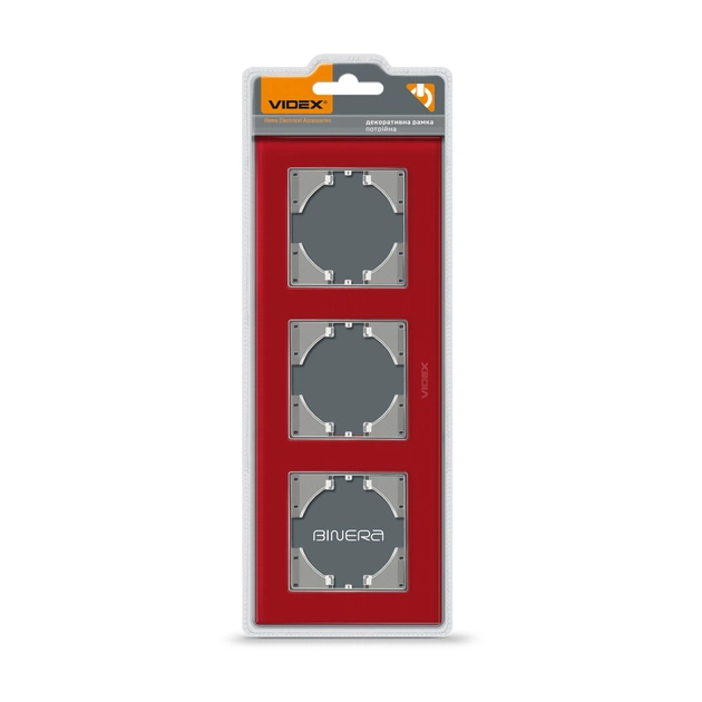 Рамка Videx BINERA червоне скло 3 поста (VF-BNFRG3H-RD)